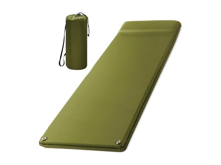 - Self Inflating Sleeping Pad, 3.1" Ultra-Thick Memory Foam Camping Pad with Pillow Fast Inflating in 20s Insulated Camping Mattress Pad 4-Season Camp Sleeping Mat for Camping/Travel/Car/Tent (Yellow)