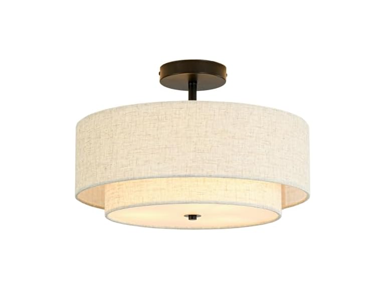 - Elegant Dual Drum Design - Adding a touch of sophistication to any room, the black semi-flush mount ceiling light features a unique dual drum design. The combination of a soft inner shade and a linen fabric outer shade with matte black metal creates a timeless look that suits both modern and traditional interiors, creating a charming and warm classic atmosphere for your space.