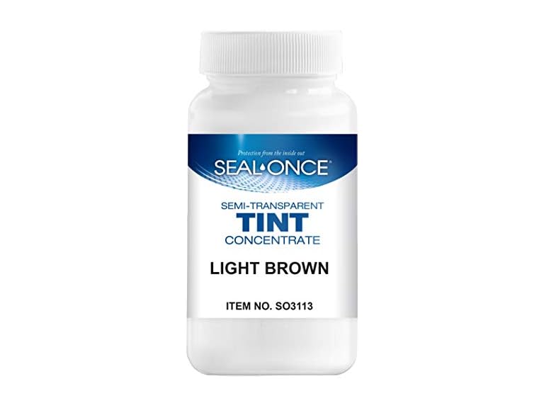 - (1) Seal-Once 4 oz Light Brown Semi-Transparent Wood Color Tint for Wood, Covers up to 125 sq. ft., 2" x 2" x 4" Bottle