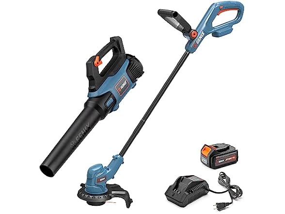 - 2-TOOL COMBO KIT: Get to powerful tools in one kit to complete your yard work with ease and convenience; The interchangeable SENIX X2 20 Volt Max* battery powers this set, which includes a 10-inch string trimmmer and a variable-speed leaf blower