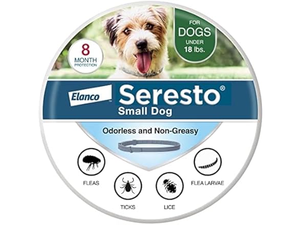The Seresto flea and tick collar for dogs provides continuous 8-month flea and tick protection. Unlike oral flea and tick prevention products that require a bite, the Seresto collar repels fleas and ticks and kills through contact; no biting required. Frontline flea and tick treatment does not repel (based on label claims). Seresto dog flea collars contain active ingredients imidacloprid and flumethrin, which are slowly and continuously released in low concentrations, spreading from head to toes, even the tail, over your dog’s coat and skin. Seresto flea collar for dogs is water-resistant and remains effective after shampooing, swimming or exposure to rain or sunlight. (Dogs must not be bathed more than once per month. For dogs that swim once a month or more, the control duration is reduced to five months for flea control, and reduced to seven months for tick control.) This vet-recommended flea and tick collar for dogs is odorless, non-greasy and easy to apply. It can be used alongside other identification or restraining collars without damaging them. Avoid the hassle of messy monthly treatments and get the effective protection of Seresto dog flea and tick collars. Also available: Seresto flea and tick prevention for cats.