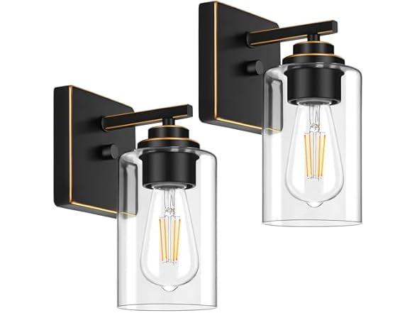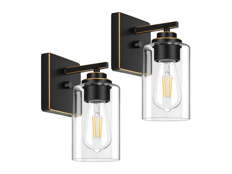 - (1) Set of 2 Wall Sconces for Bathroom, Modern Vanity Light Fixtures, Clear Glass Shade -Choose Color