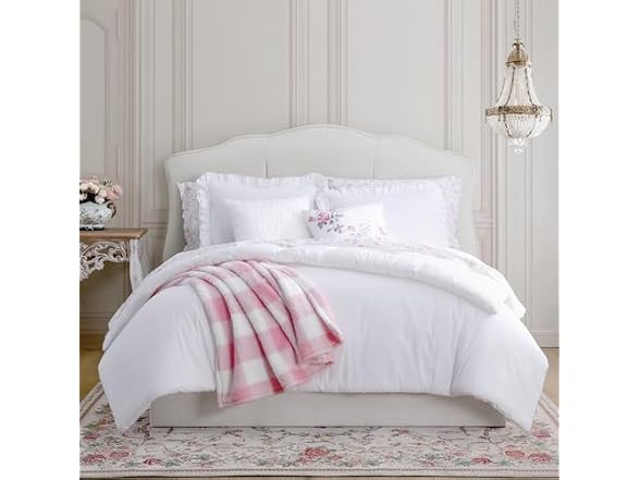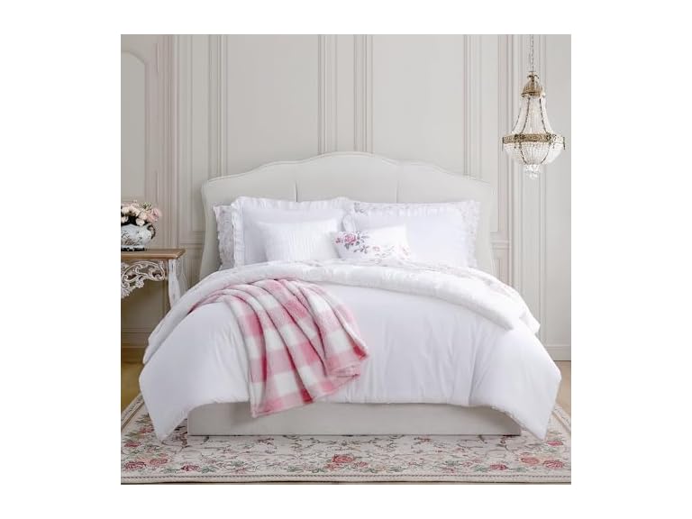 - (1) Shabby Chic® - Queen 3-Piece Comforter Set, Soft Cotton Bedding with Matching Shams, Romantic Ruffled Home Decor for All Seasons (Brette White, Queen)