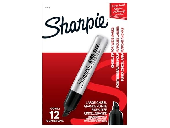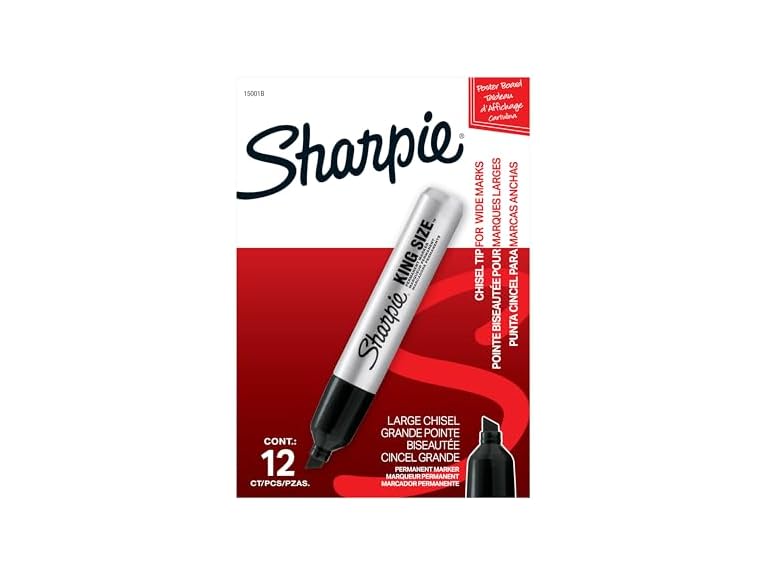 - (1) Sharpie King Size Permanent Markers, Chisel Tip, Black, 12 Count - Thick Poster Markers, Heavy Duty For Work & Industrial Use, High Capacity Ink Supply, For Paper, Metal, Plastic, And More