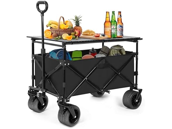 - SHINLEYPACK Collapsible Wagon with Table, Large Capacity Foldable, Beach Wagon with Big Wheels, Heavy Duty