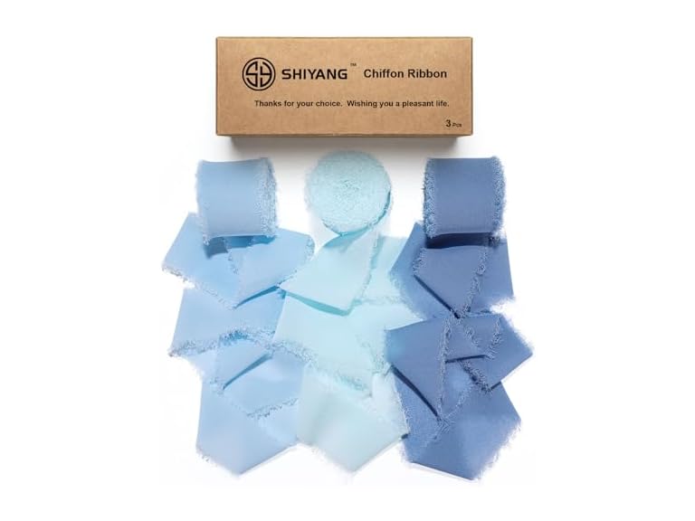 - (1) SHIYANG 3-roll 1.5in x 5Yd Handmade Chiffon Ribbons Soft Handmade Fringe Frayed Edged Bridal Bouquets Wedding Invitation Decor(Dusty Blue)