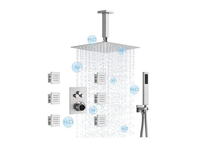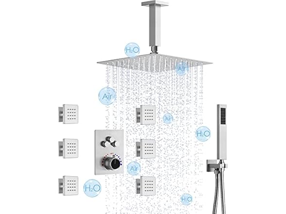 - Flexible Handheld Sprayer and Massage Jets: Our shower faucet sets complete comes with a high pressure intensive spray hand shower with a 59" stretchable metal hose, allowing you to clean specific areas that are hard to reach with an overhead shower. The 6 pcs 360° rotatable body massage jets offer a perfect massage, soothing your body and providing ultimate relaxation.