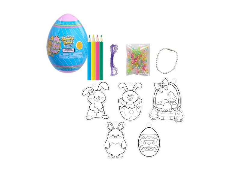 - A Fantastic Easter Activity: Color, bake, shrink, and create a one-of-a-kind necklace and bracelet with the Shrinky Dinks Easter Kit.