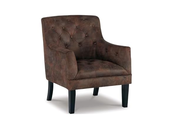- (1) Signature Design by Ashley Drakelle Traditional Accent Chair with Diamond Button Tufting, Attached Cushions, Fabric Upholstery, 20.5" Seat Height, Dark Brown