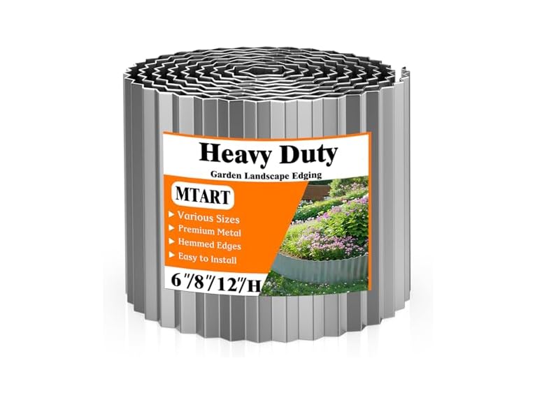 - 【Customizable Sizes & Colors】Available in various sizes and colors, MTART Corrugated Metal Garden Edging lets you customize your garden according to your design needs. Whether you’re looking for a sleek black or a classic silver finish, you can find the perfect fit for your landscape. For safe handling, wear protective gloves when adjusting the edging to your desired shape.