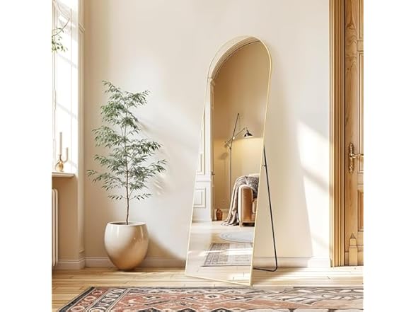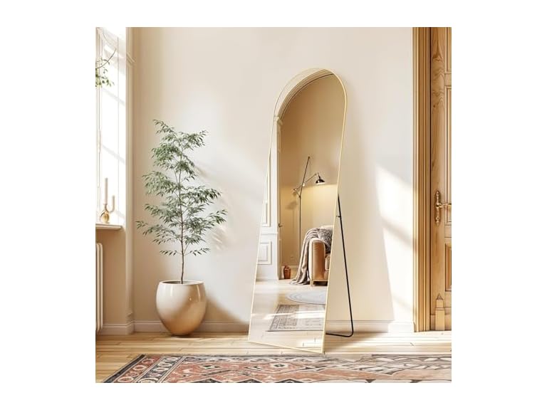 - Elegant Design: The top of the floor mirror is designed with a unique smooth arched-top frame, which especially attracts people's attention and highlights the beauty of the mirror. The thin aluminum alloy frame makes the mirror looks more classic and it is suitable for dressing in any room