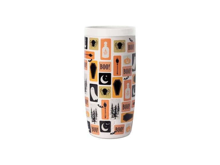 - (1) Simple Modern Halloween Signature Voyager | 16oz Travel Coffee Mug Tumbler with 360° Lid | Gift for Her Him | Ceramic-Lined Insulated Stainless Steel Cold Brew Iced Coffee Cup | Spooky Stamps on Cream