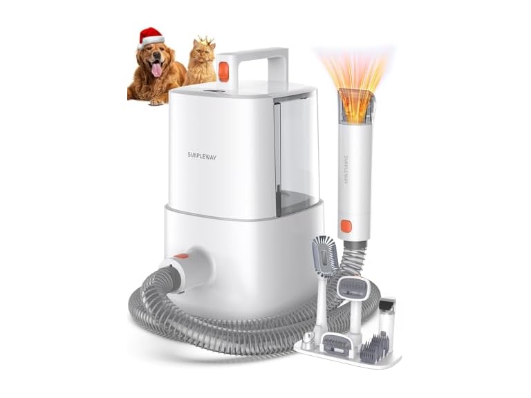 - (1) Simple Way Dog Grooming Vacuum Kit for Shedding: Pet Hair Remover with Quiet Suction Cleaners and Large Capacity Dustbin for Long-Haired Dogs and Cats Home Brush and Groomer with 6 Attachments(Ivory)