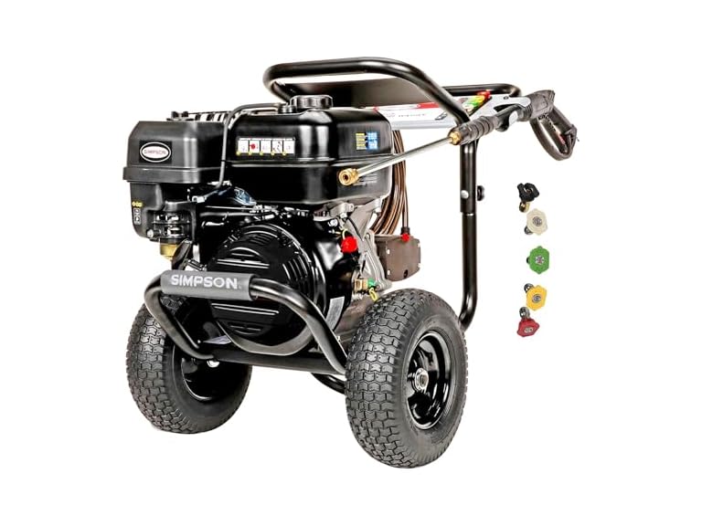 - SIMPSON PRESSURE WASHER FOR PROFESSIONALS: The Simpson PowerShot gas power washer cleans decks, driveways, siding, fencing, equipment, and graffiti; The cold water machine is great for contractors; 49-State Compliant (Not for sale in California)