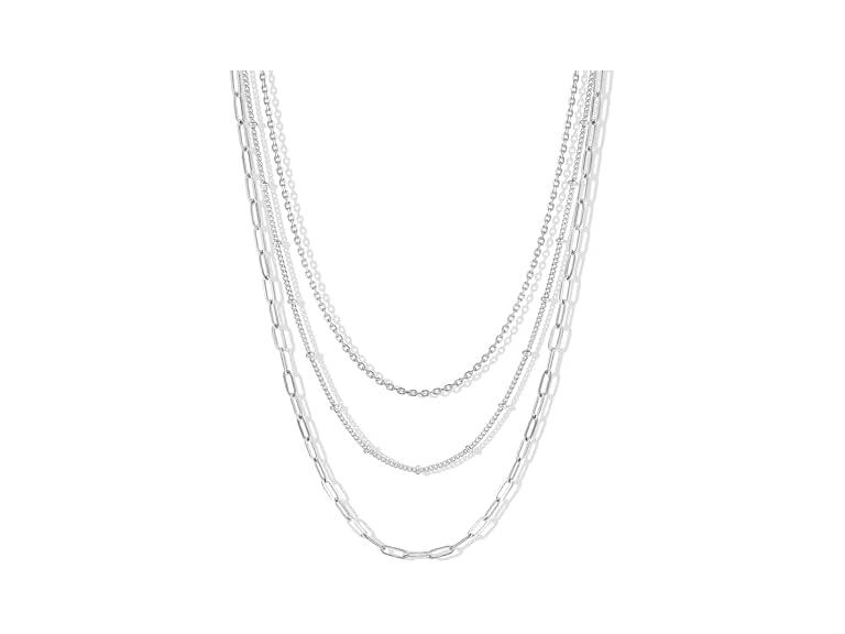 - (1) SKENUDY Chunky Necklaces for Women,Stainless Steel Waterproof Silver Necklaces,Thin,Dainty,Sturdy Women's Chain Necklaces
