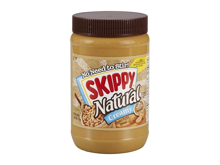 - (1) SKIPPY Natural Creamy Peanut Butter, 7 g Protein Per Serving, 40 Ounce