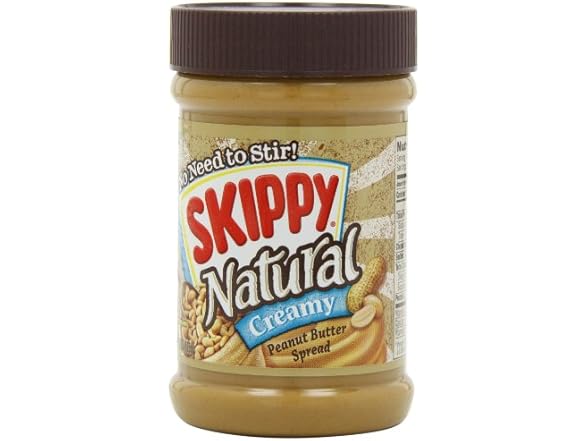 - Six 15 oz. jars of SKIPPY Natural Creamy Peanut Butter Spread. It’s all-natural: four simple ingredients combine for a sweet and savory peanut flavor and just seven grams of protein and zero grams trans-fat per serving