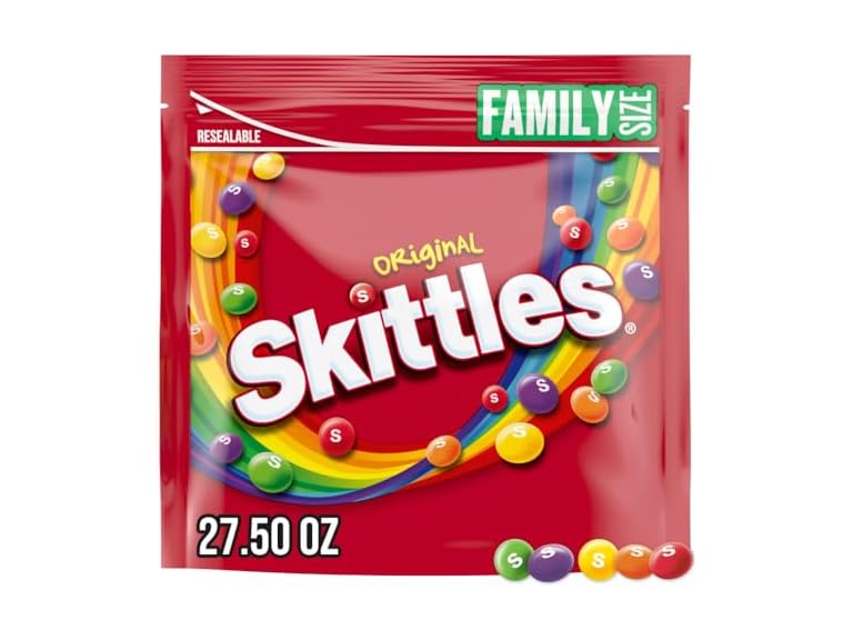 - Contains one (1) 27.5-ounce Family Size Bag of SKITTLES Original Chewy Candy Assortment