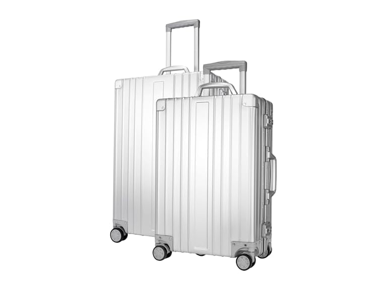 - (1) SKYLARK-100 Aluminum Luggage Set 20 & 26-inch, Silver Hard Shell Suitcase Combo with TSA Locks, Spinner Wheels, Lightweight & Scratch-Resistant