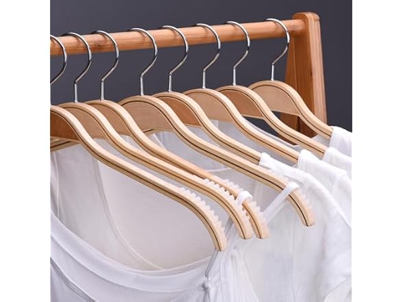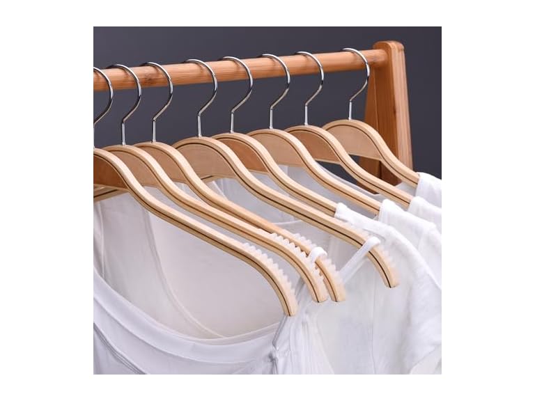- Sukkiri Homu Sleek Wooden Hangers with Non-Slip Rubber Grips, Sweater Hangers No Shoulder Bump, Lightweight Clothes Hangers 30-PackBar