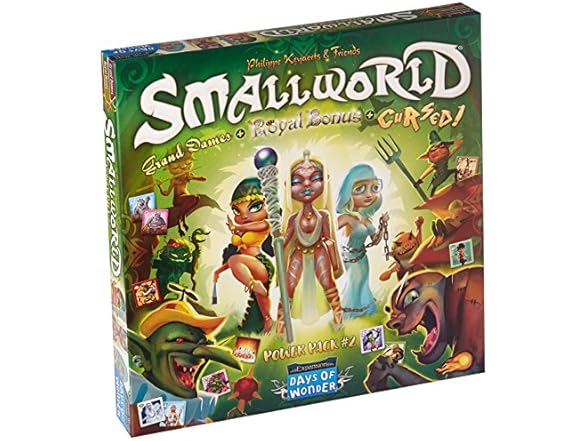 - (1) Small World Board Game Cursed! + Royal Bonus + Grand Dames of Small World POWER PACK #2 - Family Game for Kids & Adults, Ages 8+, 2-5 Players, 60 Min Playtime, Made by Days of Wonder