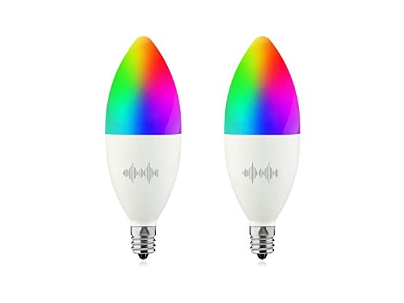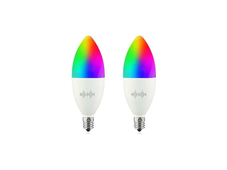 - (1) Helloify B11 LED Smart Candelabra Bulb Compatible with Alexa Google Home, RGBCW Color Changing, Cool White to Warm White, Dimmable, No Hub Required, 40W Equivalent, RGB+2700K-6500K, 2-Pack