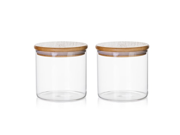 - (1) Smart Design 2-Pack Round Glass Canisters with Bamboo Lid - Choose Size