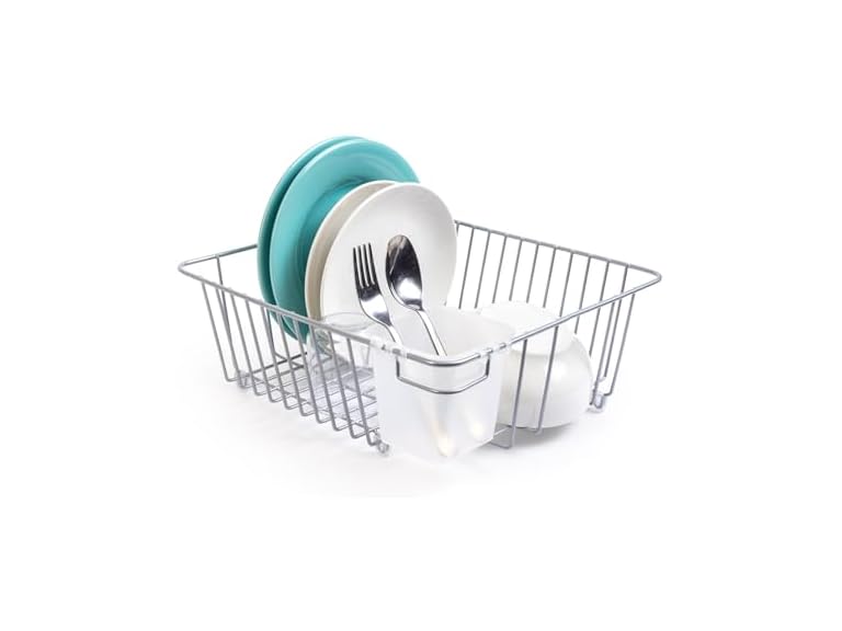 - SMALL DISH DRAINER - Keeps all your clean kitchen dishes organized while drying on the counter.