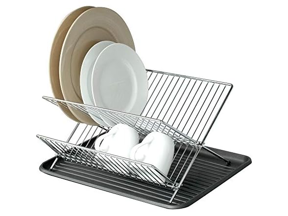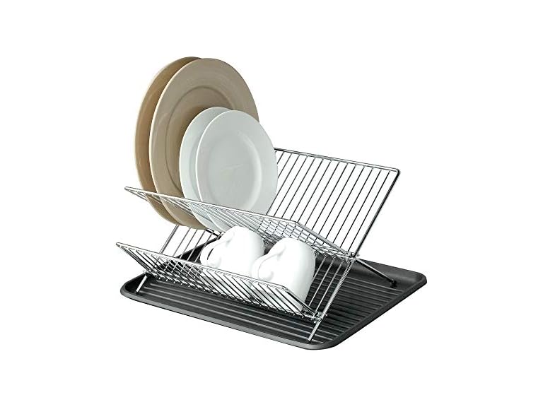 - [FEATURES] Sturdy chrome wire design has 2-tiers for plates & dishes & folds for compact storage.