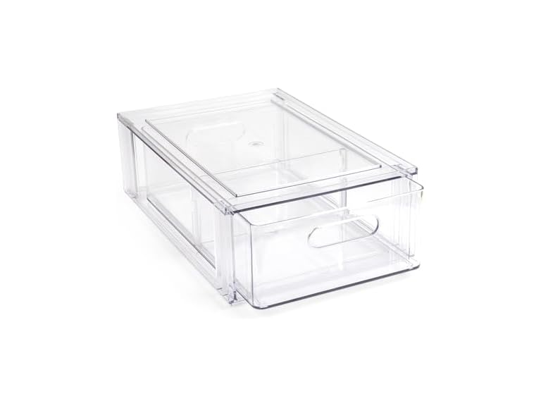 - PULL-OUT BIN - Doubles your shelf space storage and stacks.