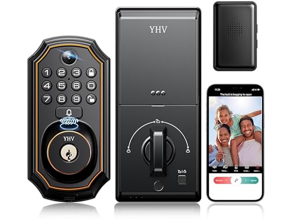 - Multi-Access Unlock: The YHV keyless entry door lock offers a doorbell, camera, and unlocking options like biometric fingerprint recognition, app, password, and key. The AI fingerprint sensor enables quick, secure home access.