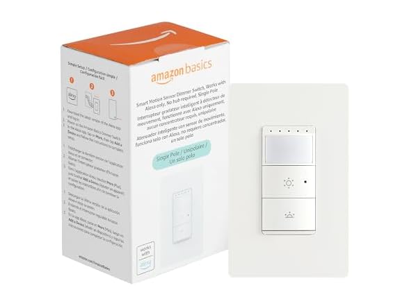 - Amazon Basics Smart Motion Sensor Dimmer Switch, Single Pole, Works with Alexa Only, 2.4 GHz Wi-Fi, No Hub Required, Voice Control, Control from Anywhere, 1-Pack, White