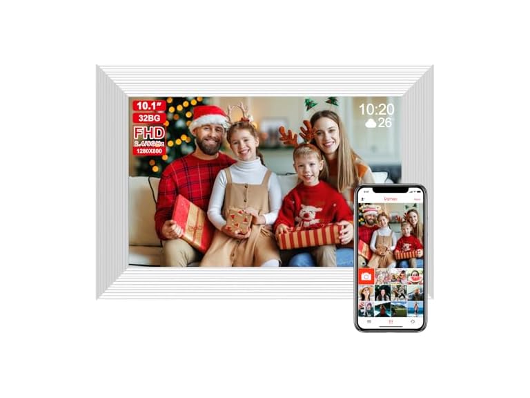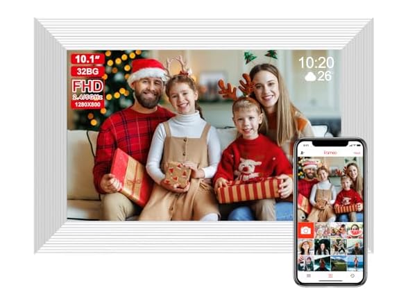 - 【High - Quality Display】: Featuring a 10.1 - inch smart Wi - Fi digital photo frame, the Frameo offers an HD resolution of 1280*800. Thanks to IPS technology, you can view images clearly within a 178° angle, providing a wide viewing angle and accurate color reproduction. This ensures that every cherished moment is presented in the best possible way on your digital frame, making it perfect for creating an electronic picture frame slideshow.
