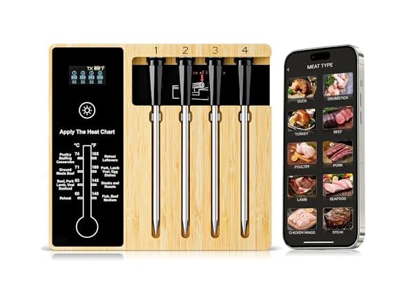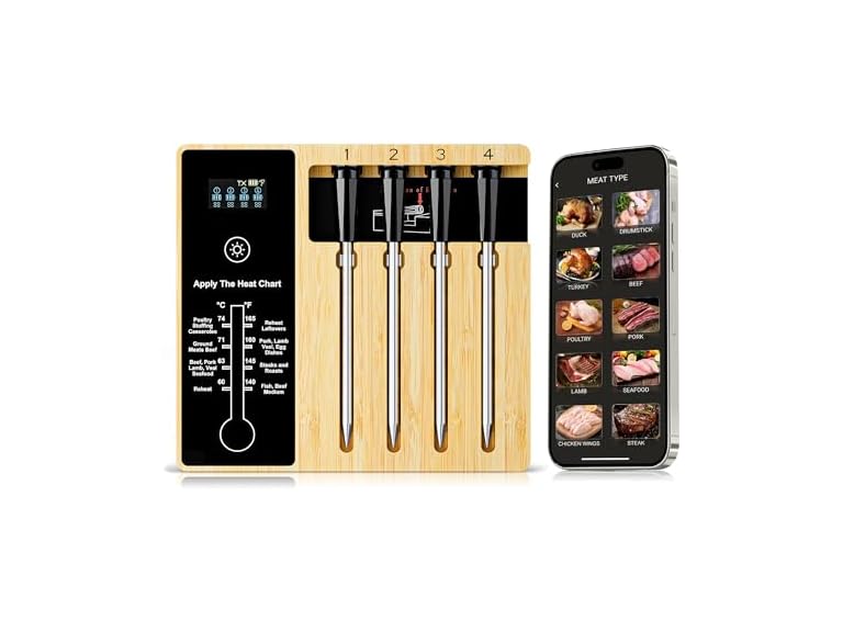 - Smart Wireless Meat Thermometer 4 Probes, Bluetooth Food Thermometer, Remote Tracking and Real-Time Readings from Apps, for iOS and Android, for BBQ, Grill, Smoker