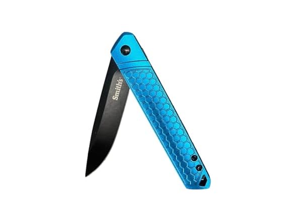 - 3.23 INCH POCKETKNIFE – Smith’s Lawaia Gentleman’s 3.35” drop point blade pocketknife is made with a black oxide stainless-steel blade, Blue Aluminum handle, ball bearing pivot, and a flipper design for easy opening.