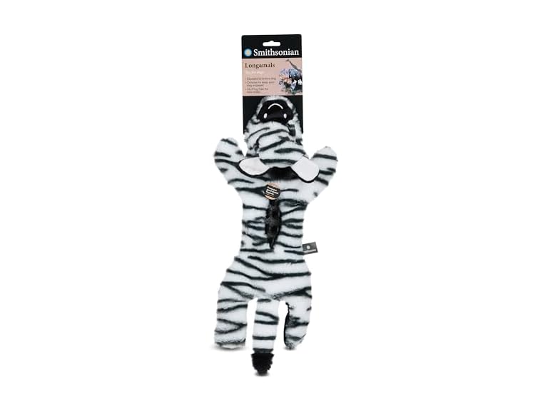 - (1) Smithsonian Longamals Zebra Plush Dog Toy – 20" Crinkle & Squeaky, Stuffing-Free Interactive Tug Toy for Medium & Large Dogs