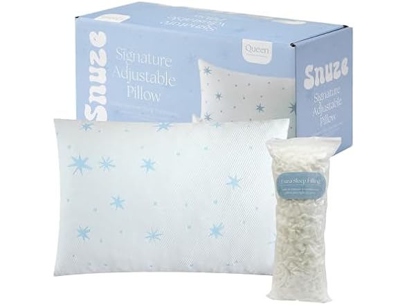 - (1) Snuze Signature Adjustable Bed Pillow with Knit Removeable Cover, Medium Firm Pillow for Side, Back and Stomach Sleeper, Queen Size 20"x30"