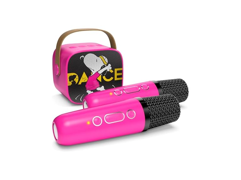 - Wireless karaoke speaker with Peanuts fun: Bring the joy of singing to family nights and parties with this portable all-in-one system that doubles as a Bluetooth speaker for everyday music playback.