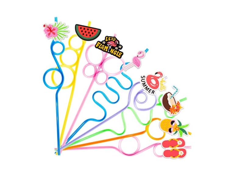 - THE PERFECT Summer THEMED PARTY GIFT: Our birthday supplies set INCLUDES 24 SET Summer Reusable Crazy Straws Drinking Silly Straws (With 24 different vivid charm designs) + 2PCS STRAW CLEANING BRUSHES, which adds some fun to your party or Summer-themed event with these party favors! Perfect for decorating drinks and adding a touch of whimsy to your party decorations.