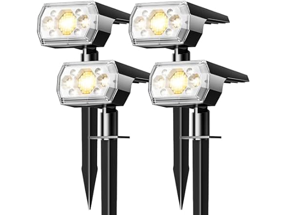 - (1) Solar Lights Outdoor Waterproof IP65, 64LED 3 Lighting Modes Solar Powered Garden Yard Spot Solar Lights for Outside Landscape (Cool White, 4 Pack)