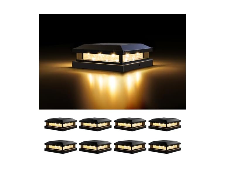 - AUTOMATIC LIGHTING & LONGER LASTING: Looking for a reliable light to illuminate your yard? Equipped with 1200mAh monocrystalline silicon solar cells, our solar post lights will automatically charge during the day and light up at night for up to 8-12+ hours, no need to switch it on or off frequently, avoiding unnecessary hassles. The conversion rate of these 6x6 post cap solar light can up to 21%, no extra electricity costs, which saves both energy and money. (Note: Please make sure that the sunlight is shining directly on the solar panel)