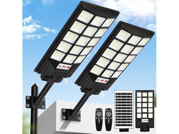 - 5730 Super Bright & Energy-Saving: Different from other outside solar street lights with 5054 LED beads on the market, our solar powered street lights adopt 5730 LED beads, with 240 LEDs for each, in total of 480 pcs super bright LED beads, delivering an incredibly bright illumination of 25000 lumens, which can better illuminate your way home and protect you, your family, and friends from darkness than any other lights on the market. Our LED street lights are equipped with large-capacity solar rechargeable batteries, requiring no additional electricity costs, making them super energy-saving and cost-effective
