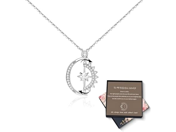 - (1) Someki Badass Squad Necklace for Women, Rotatable Star and Moon Best Friend Friendship Pendant Necklace ''We Always Have Each Other's Back'' Meaningful Bestie Christmas Jewelry Gifts (Silver-2)