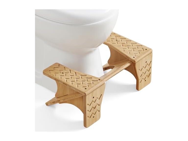 - (1) SONGMICS Bamboo Toilet Stool, Adjustable Poop Stool with Non-Slip Grooves, Height Convertible to 6.9 or 9.5 Inches, Squat Potty Stool for Bathroom, Space-Saving, Light Bamboo