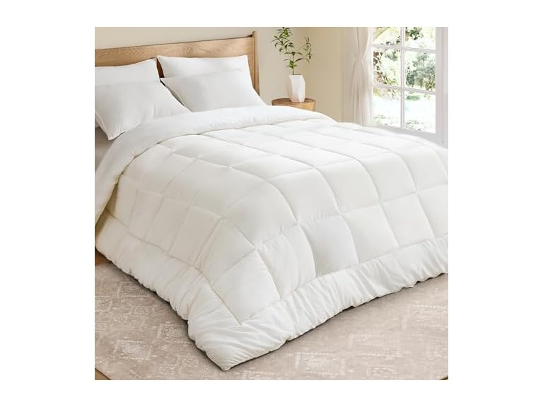 - (1) SONGMICS HOME Down Alternative Comforter, Duvet Insert, All-Season Quilt, Breathable Viscose and Soft Microfiber, 300 GSM Fill, for Hot Sleepers, Machine Washable, White - Choose Size