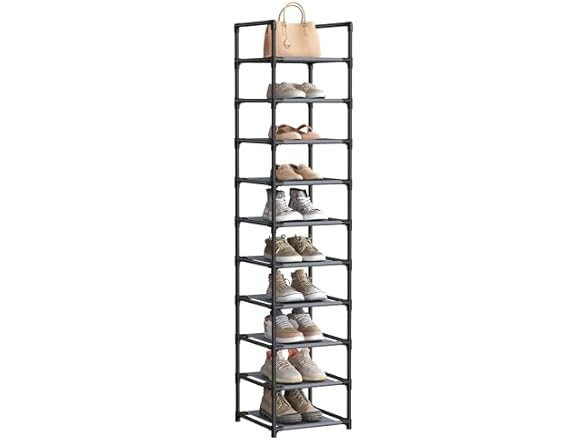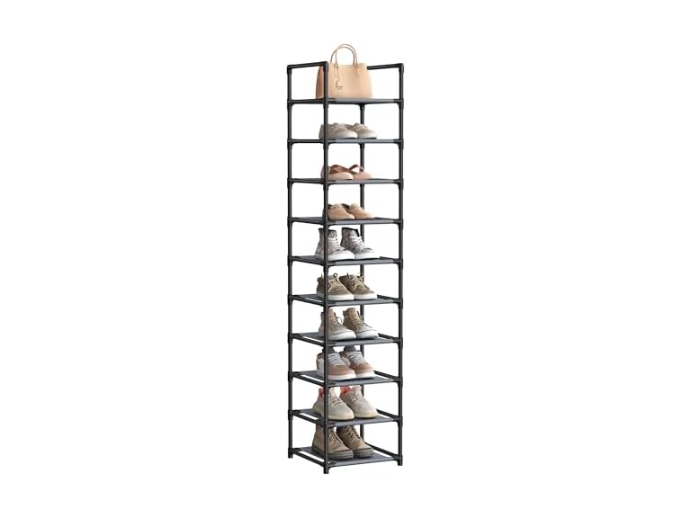 - Slim Figure yet Large Capacity: Sized at 13"D x 13"W x 68"H, this slim shoe rack with 10 tiers fits in any small spaces in your home, taking up little floor space while providing ample storage space to help you get your shoes organized