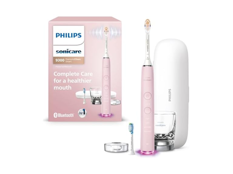 - (1) Philips Sonicare DiamondClean Smart 9300 Electric Toothbrush, Sonic Toothbrush with App, Pressure Sensor, Brush Head Detection, 4 Brushing Modes and 3 Intensity Levels, Pink, Model HX9903/25