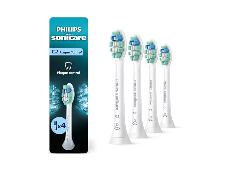 - Philips Sonicare C2 Plaque Control - Genuine Replacement Electric Toothbrush Heads, White, 4 Pack One Year Supply, HX9024/77