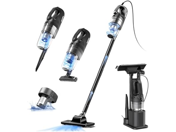- 6-IN-1 MULTIFUNCTIONAL VACUUM: It can easily converts to a handheld vacuum and comes with various cleaning attachments, including a floor brush, sofa brush, and crevice tool, to meet different cleaning needs. Now, Curtains and ceilings are no longer out of reach. Included crevice tool sucks debris out of car seat and door crevices.