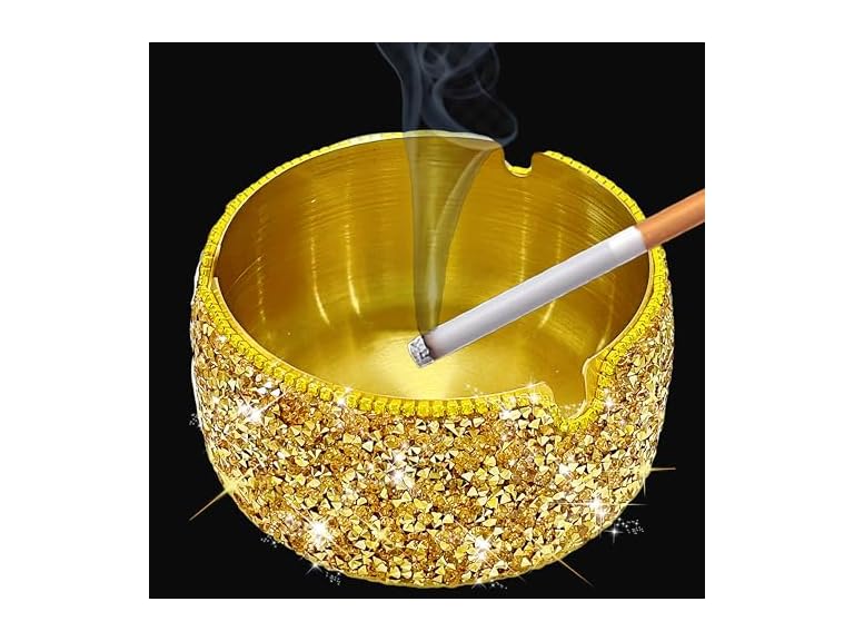 - Elegant Design: This home ashtray features a diamond-studded design with a silver stainless steel material, measuring 3.93.92 inches, adding a touch of brilliance to your home decor.